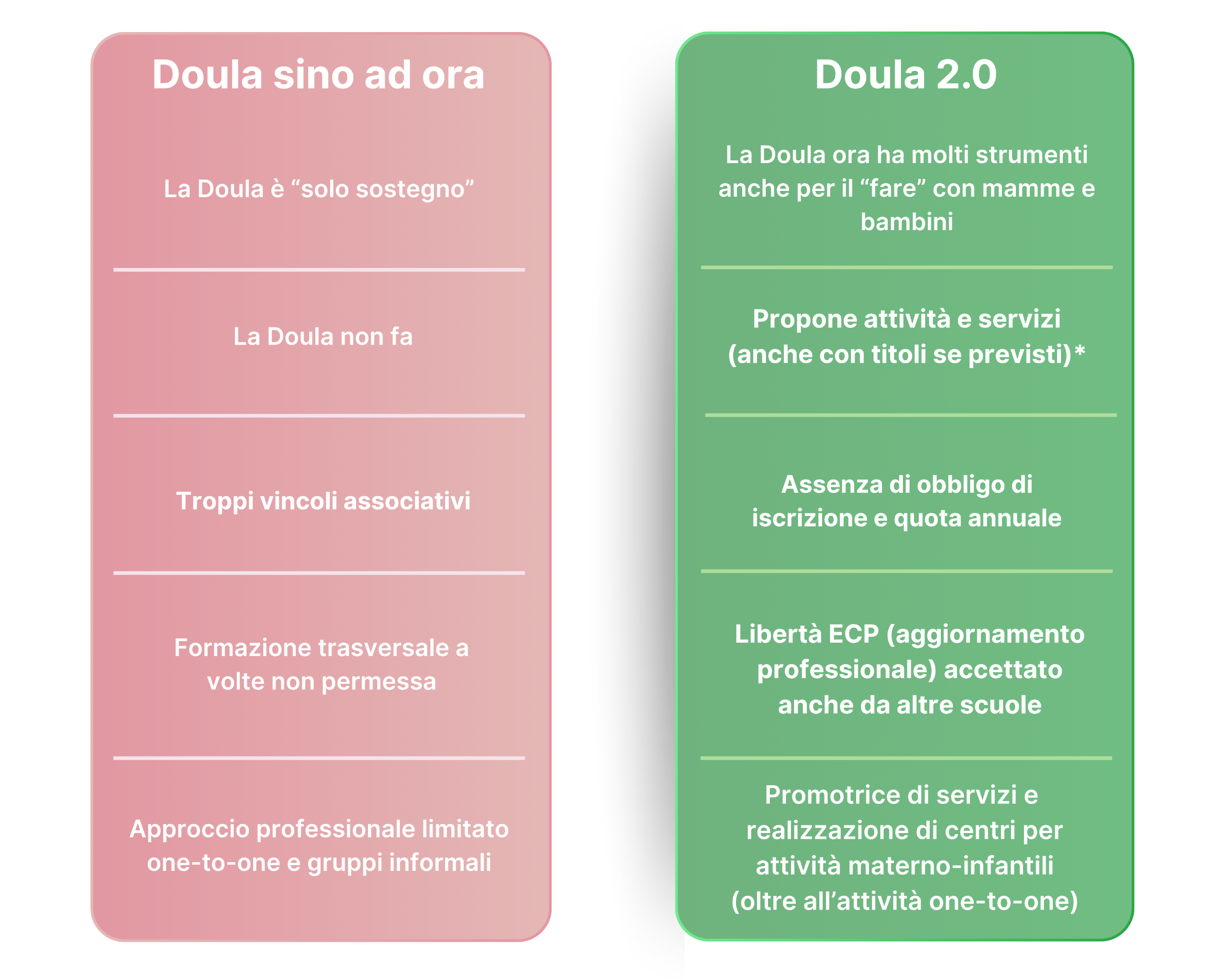 Qui la Doula non è più soltanto presenza accanto alla madre ma una professionista consapevole e competente che guida laboratori, collabora con ostetriche, educatrici e operatori del benessere e promuove percorsi di continuità materno-infantile fondati su scienza e relazione.